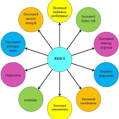What does RED-S stand for and what does it mean? RED-S (Relative Energy Deficiency in Sport), previously known as the female athlete triad, can affect both males and females. RED-S occurs when there is a greater output of energy than intake of energy to fuel your body. If you or someone you know is struggling with RED-S, please reach out for help as performance can be impacted and increase your risk of injury. This energy imbalance could be by accident or on purpose. A prolonged time in an energy deficient state may lead to some of the following symptoms: