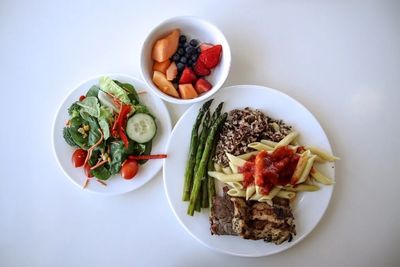 What should be included in these meals? Carbohydrates, protein, fruits, vegetables and a small amount of fat. When it comes to carbohydrates, unless you are used to eating high fiber sources, stick with regular pasta, rice, bread or potatoes. If you all of a sudden add in a high fiber source, it could cause GI discomfort a few hours later. As for protein, you want to have a lean source and try to avoid options that are deep fried or extremely greasy. If it is a very greasy source of protein, it will take longer for the food to digest and again could send you to the bathroom. Lastly, your fruits and vegetables can be fresh, frozen or canned. Is fresh the preferred recommendation, yes, however the frozen and canned are going to have about the same nutrition profile. Plus, having frozen or canned is better than having no fruits and veggies at all. Lastly, you want to be sure you're hydrating prior to competition as well. I recommend sipping your fluids and not chugging, but you want to be sure your body is hydrated going into competition.